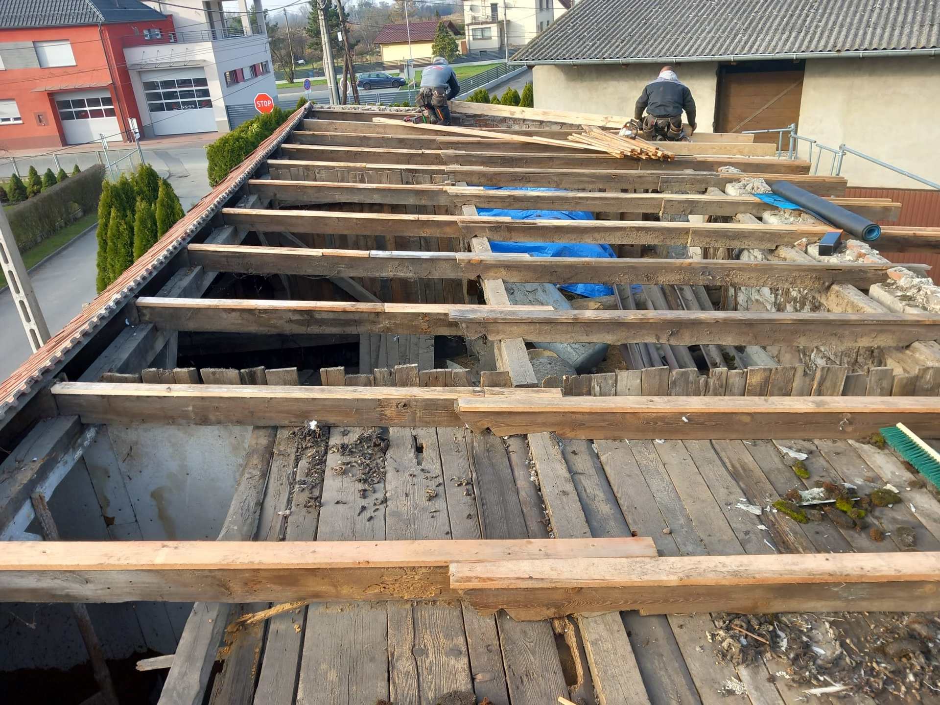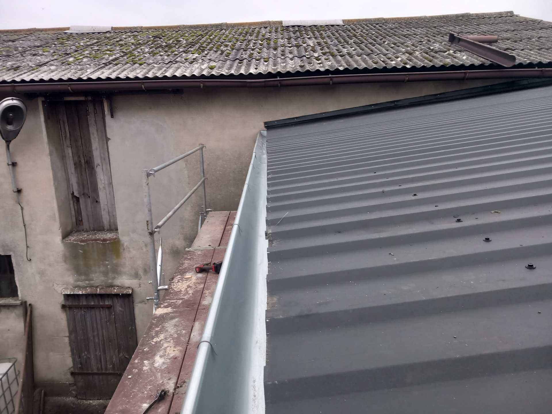 Podczas prac u naszego klienta, wymieniliśmy część konstrukcji dachowej, a następnie dokonaliśmy montażu blachy trapezowej wraz z orynnowaniem.