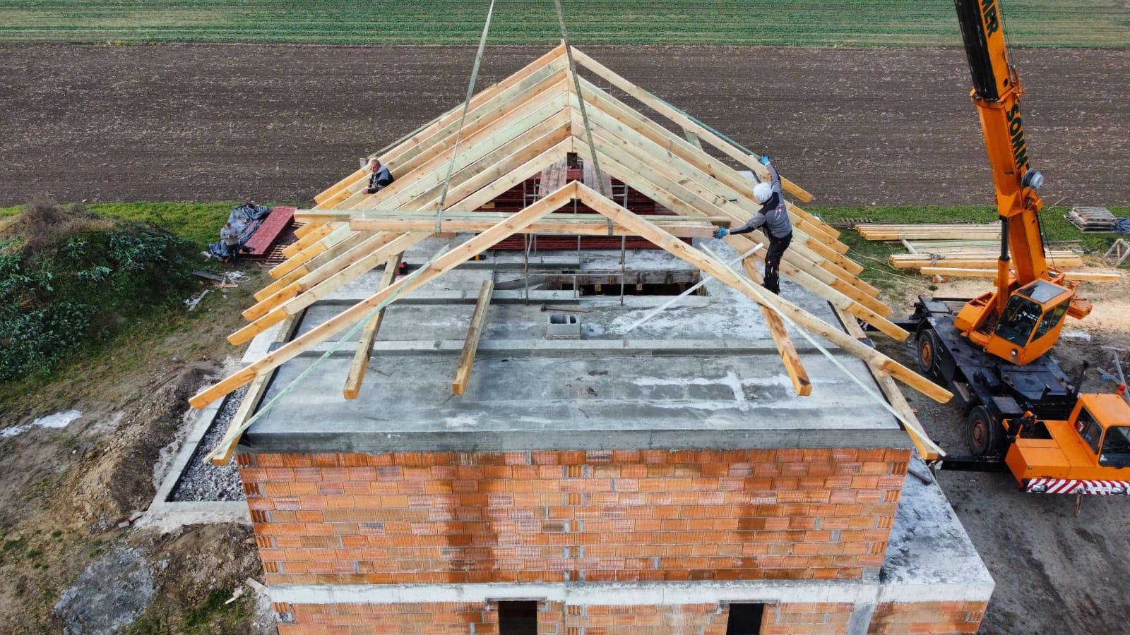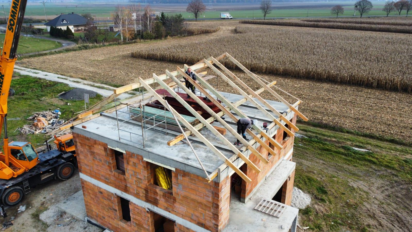 Podczas realizacji u naszego klienta, po uprzednim przygotowaniu drewna do montażu, wykonaliśmy wycięcie konstrukcji / więźby dachowej oraz kompleksowy montaż.