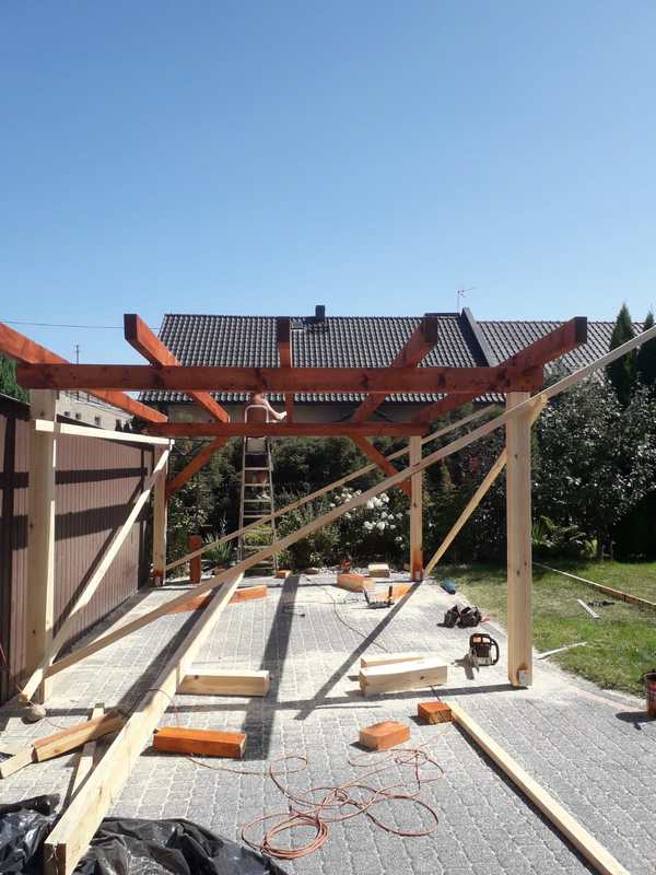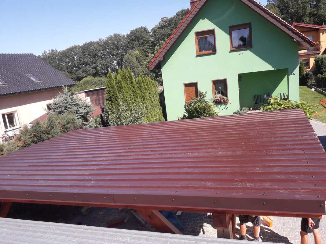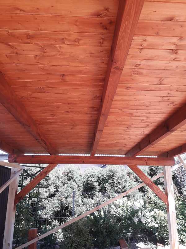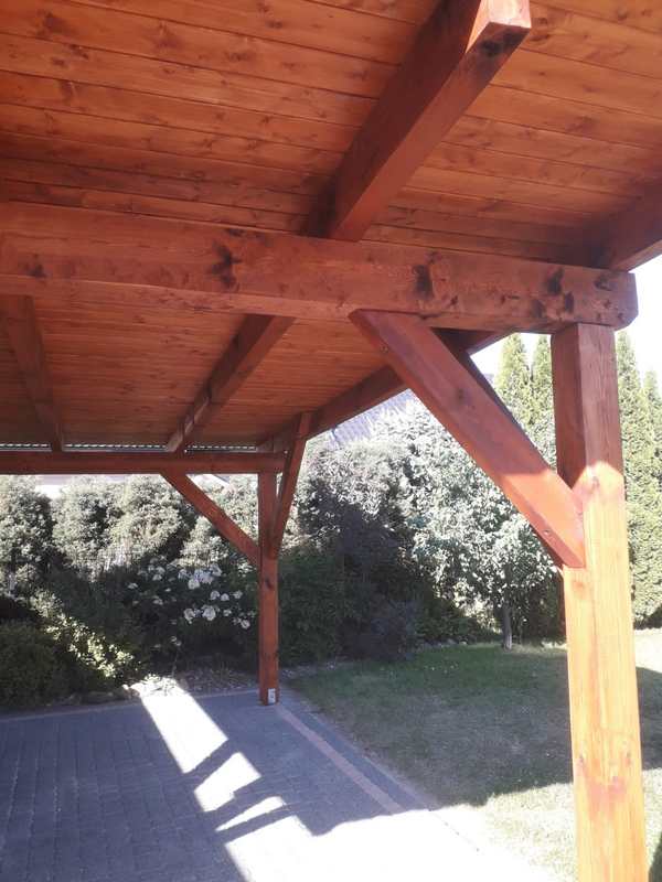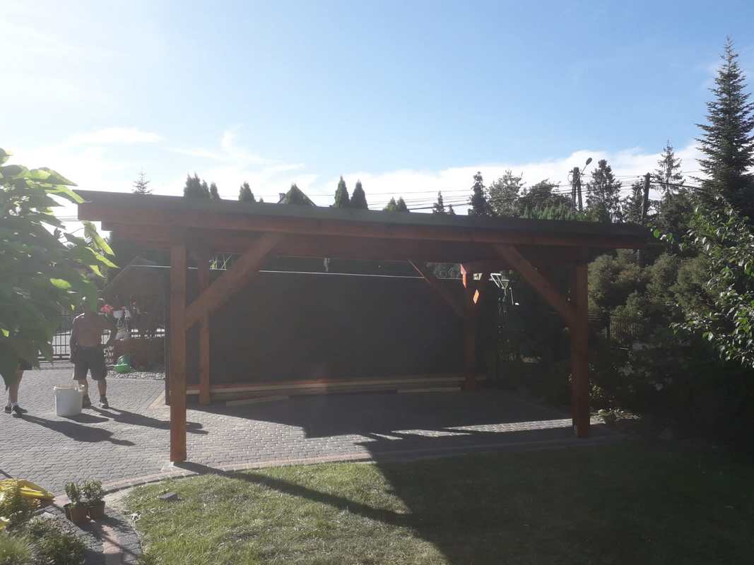Konstrukcja heblowana, zabezpieczona impregnatem i pomalowana . Całość została obita boazerią oraz pokryta blachą trapezową .