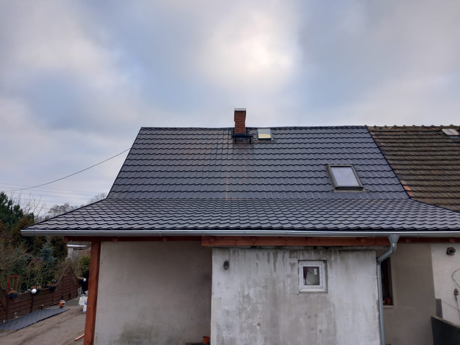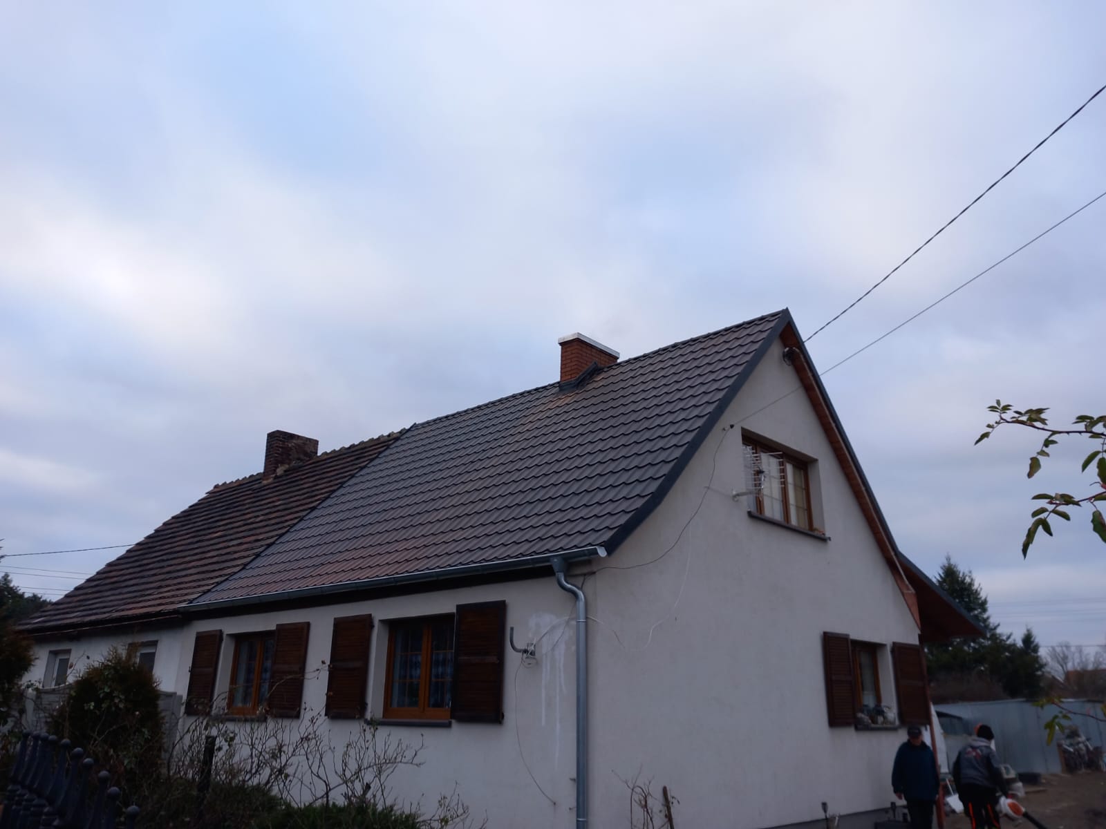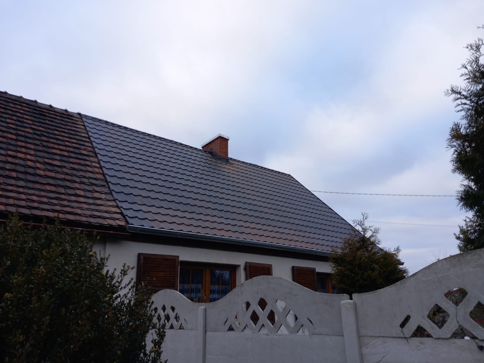 U naszego klienta wymieniliśmy pokrycie dachowe, wykonaliśmy drewnianą konstrukcję oraz przedłużenie dachu.