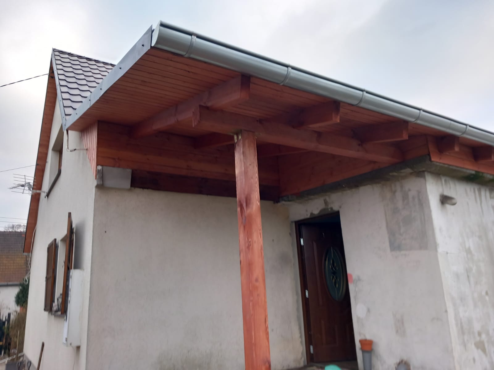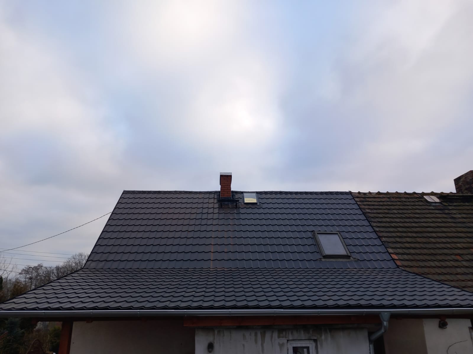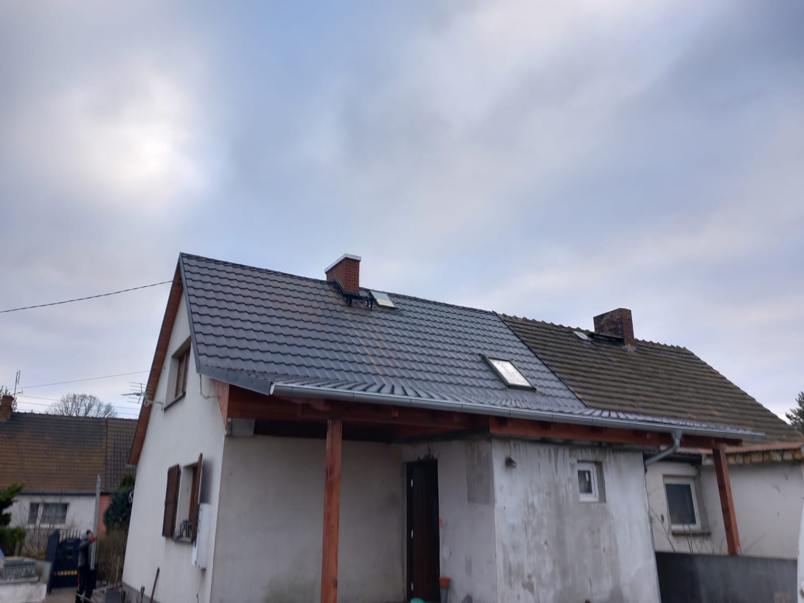 U naszego klienta wymieniliśmy pokrycie dachowe, wykonaliśmy drewnianą konstrukcję oraz przedłużenie dachu.
