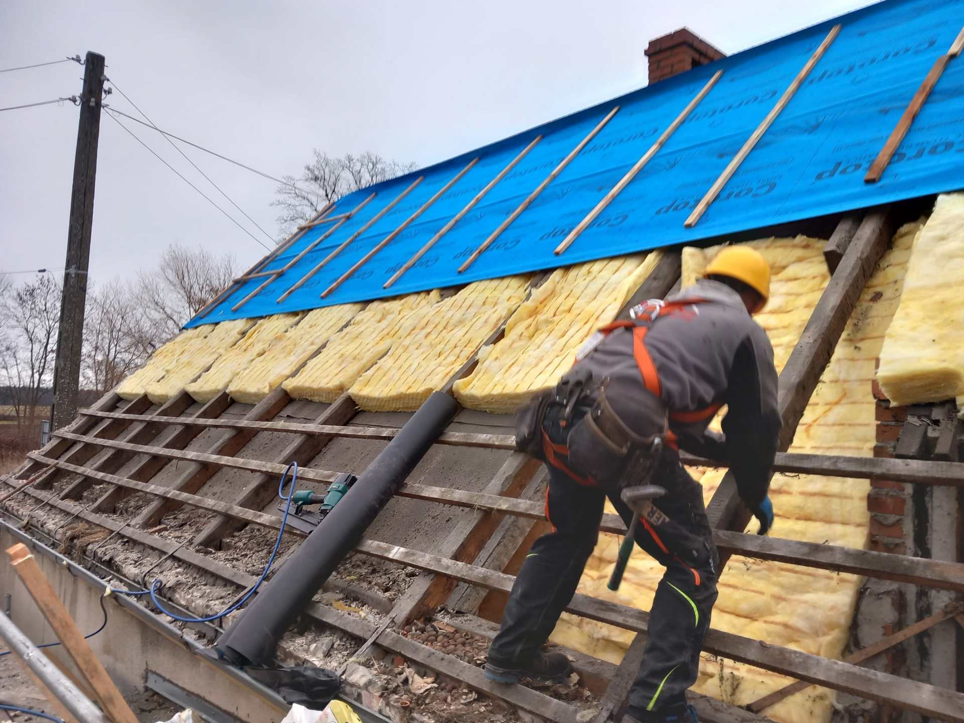 W ramach usługi została dokonana wymiana pokrycia dachowego oraz docieplenie poddasza od zewnątrz z zastosowaniem wełny mineralnej o bardzo wysokich parametrach termoizolacyjnych.